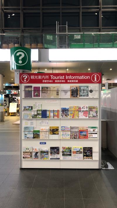 JR高松駅の改札を出た場所にあります。有人案内所ですが、プレハブ小屋の小さな建物です。高松市・香川県を中心に、観光パンフレットがもらえます。今回は、香川旅のパスポートの入県・出県手続きのために行きました。