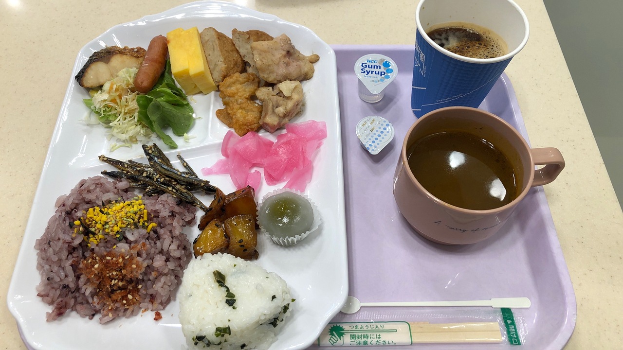 滋賀県の草津駅前のホテルです。急な宿泊でしたが、滋賀県のホテルも、意外と満室でした。京都へ近いかもしれません。1泊素泊まりで、9000円ぐらいです。朝食ビュッフェは高めで、2000円ぐらいでした。品数は豊富です。
