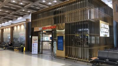 金浦空港国際線のラウンジです。プライオリティパス保持者が利用できます。プライオリティパスは、例えばJCBだと、プレミアムカード保持者に与えられる権利のようなものです。スカイハブラウンジは、韓国料理も提供されています。