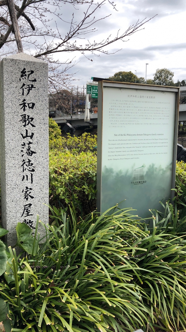 このエリアには、江戸時代、紀伊徳川家の麹町邸がありました。このことにちなんで、石碑が建っています。このエリアを「紀尾井町」と呼びますが、由来は、紀伊徳川家・尾張徳川家・井伊家の頭文字からつくられたものです。