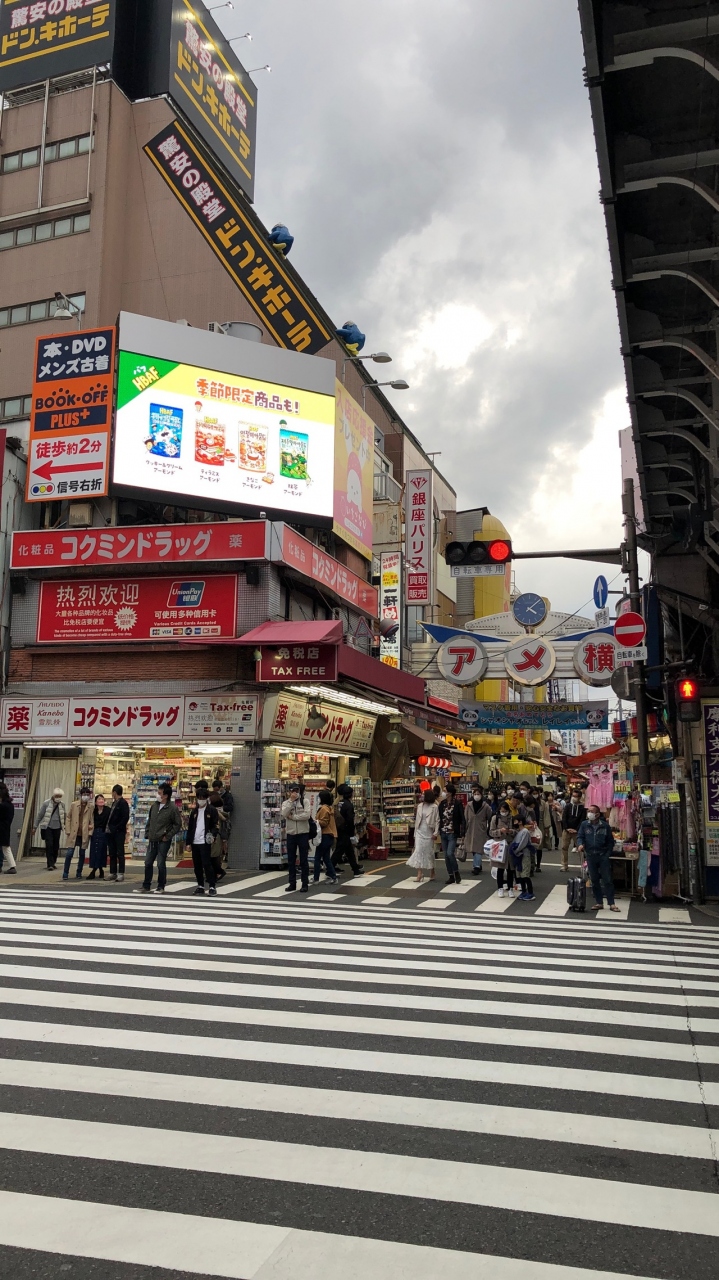 上野公園入口から、上野広小路にかけての商店街です。昭和の時代からある歴史的な通りです。年末の買い出し客で混雑する様子が有名です。道幅は広く無いので、お客さんが多いと歩きにくいです。チェーン店が少ないので、個性的な店を見て歩くのがおもしろいです。