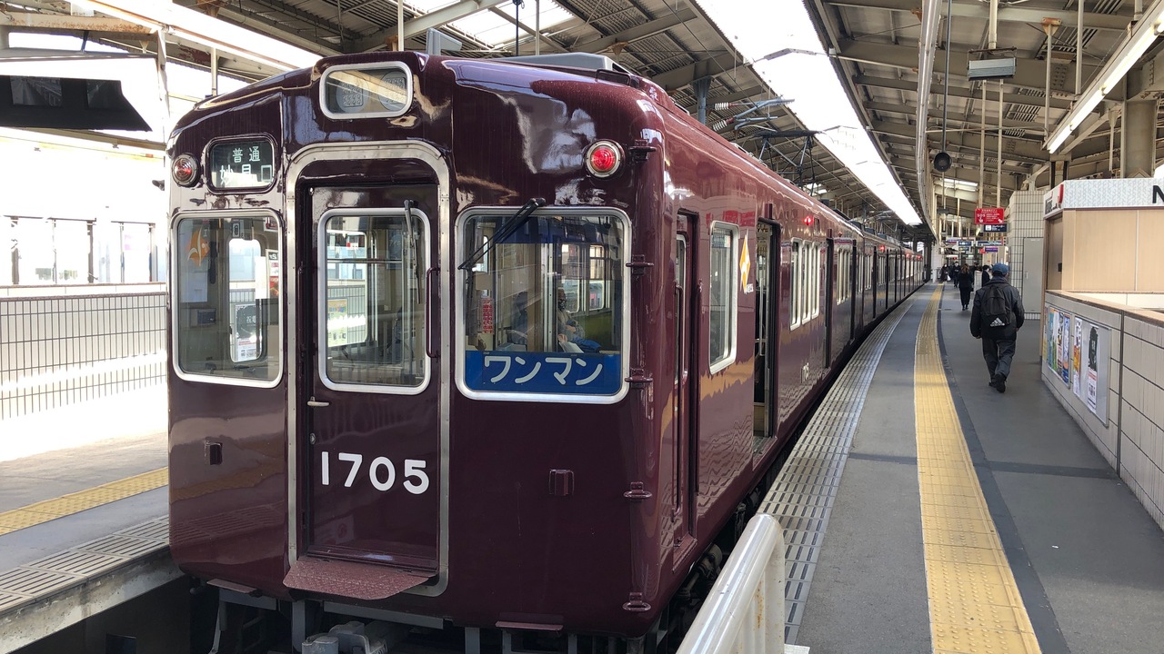 大阪梅田~十三~西宮北口~神戸三宮を結びます。大阪・神戸間は、JR線や阪神線も走っており、競争関係にあります。阪急神戸線は、一番北側・山側を走っています。駅間距離が長いので、各駅停車でもまあまあ速いです。