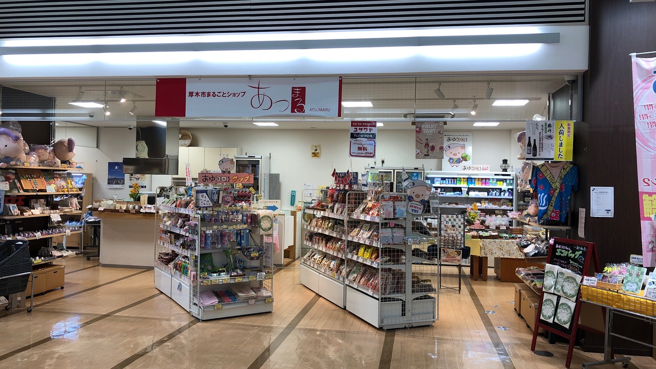 本厚木の複合施設・アミューのB1Fにあります。厚木市の土産などを集めた、アンテナショップのような店です。厚木のゆるキャラ・あゆコロちゃんグッズ、鮎の形をしたおかき・和菓子、農産物などが売られています。厚木以外の、例えば沖縄の商品などもありました。