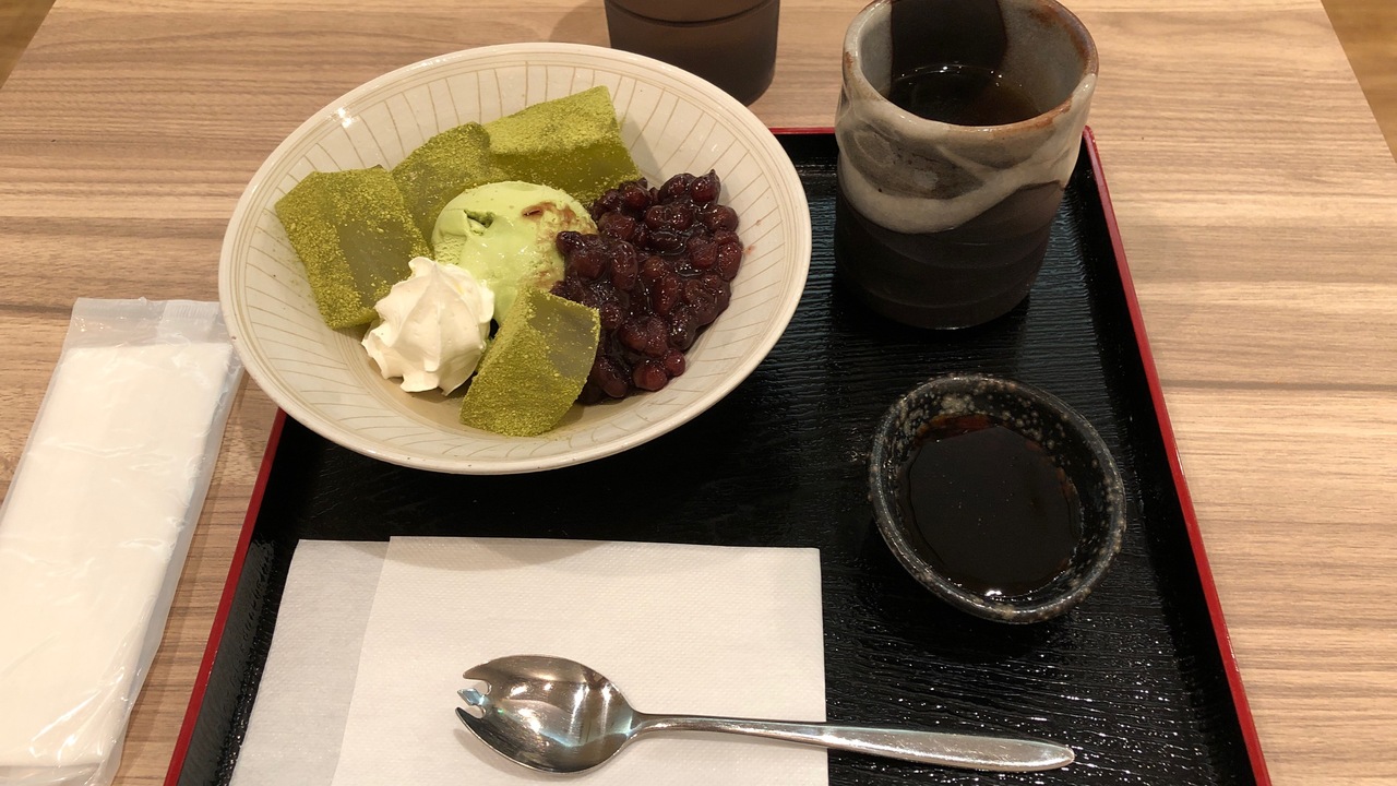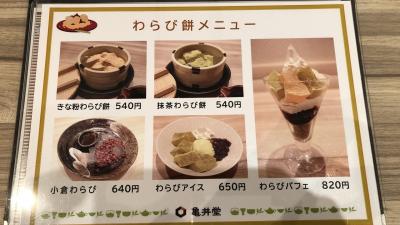 神戸銘菓の一つ・瓦せんべいで有名な亀井堂の甘味処です。神戸に数店舗るようで、さんプラザ店はB1Fにあります。わらびアイス650円を食べました。わらび餅は、きな粉・抹茶から選べます。どのメニューもお手頃価格でした。
