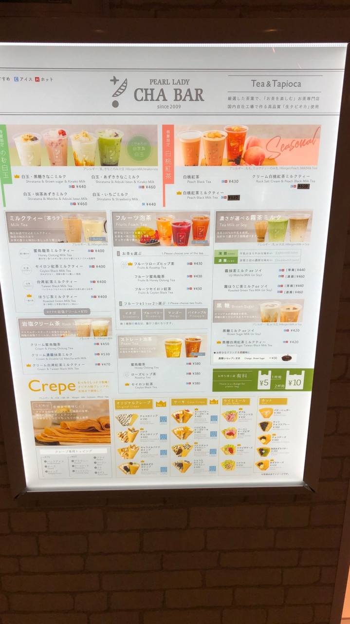ルフロンのフードコートにあります。ただし、パールレディの店舗は独立しており、専用のカフェスペースがあります。ミルクティーだけでも、セイロンミルクティー・台湾ミルクティーなど数種類あり、どれにするか迷います。