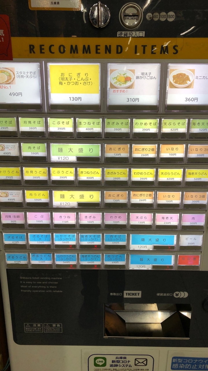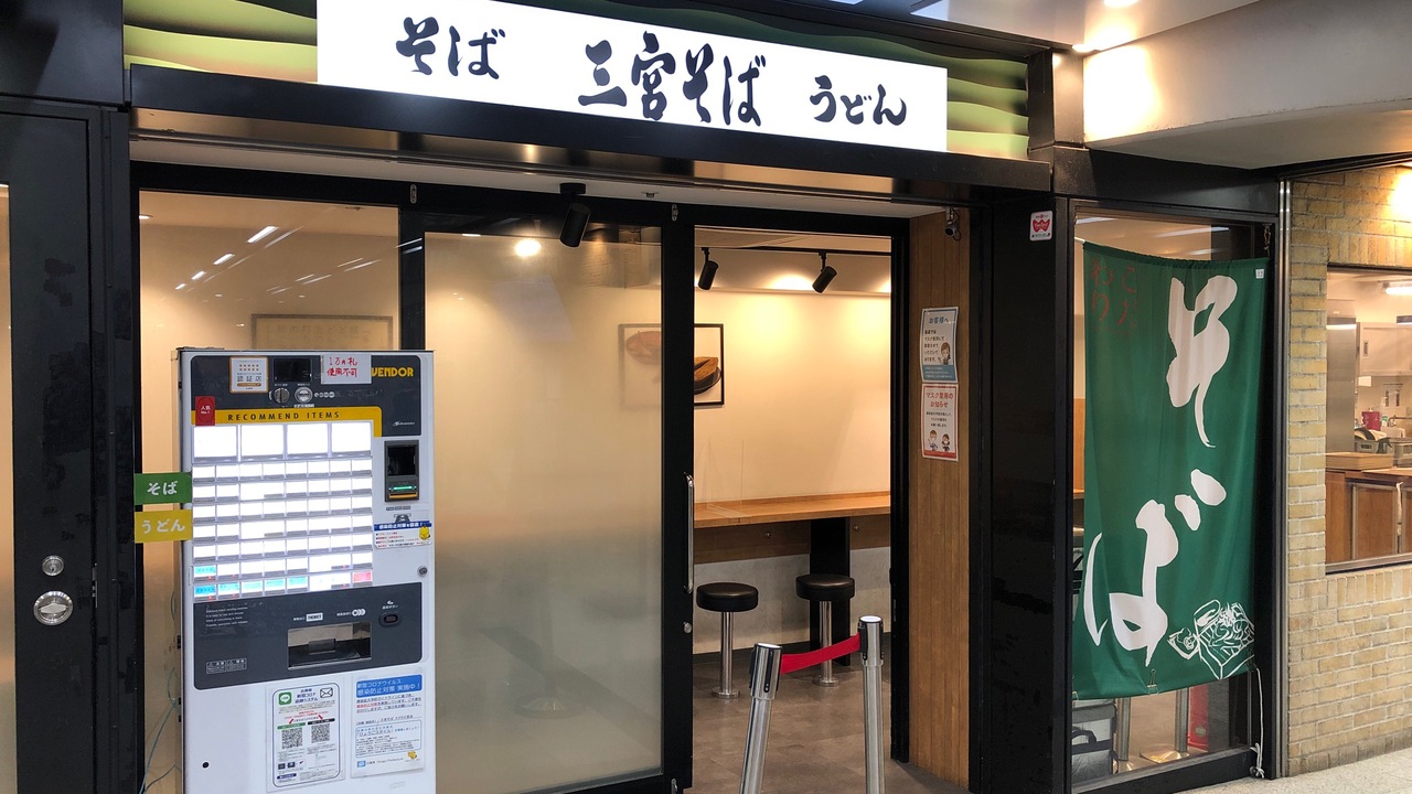 阪神三宮駅にある駅そば屋さんです。立ち食いの雰囲気ですが、店内は明るくきれいで、イスもあります。一番安いかけそば・かけうどんが290円です。天丼などの丼物は無く、ご飯ものは、おにぎりやいなり寿司だけです。