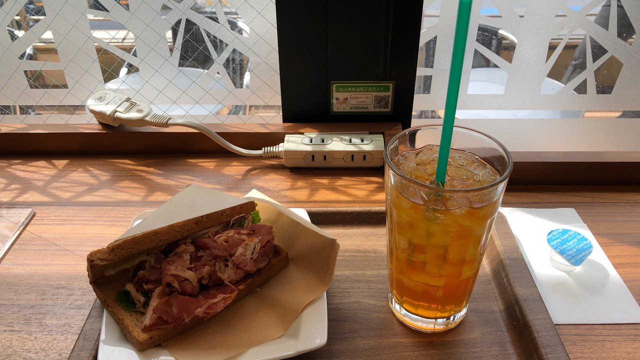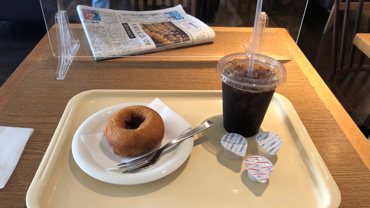 都内に何店舗かあるカフェチェーン店です。浜松町店は、浜松町駅から徒歩10分ぐらい、すき家の2Fにあります。モーニングメニューが、ドリンク付きで390円とお得です。アイスのみですが、屋久島紅茶という珍しいドリンクも選べます。