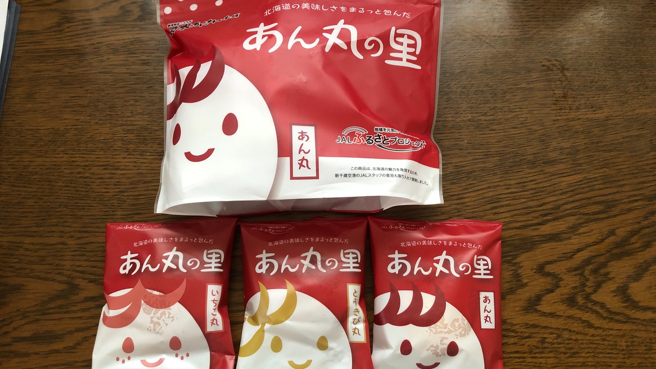 月寒あんぱんは、明治時代から続く、札幌のご当地グルメです。いくつものメーカーが販売していますが、こちらの「ほんま」が有名です。小豆餡だけでなく、いちご餡、とうきび餡のパンなどもあります。今回は、JALのスタッフさんも企画に関わったという「あん丸の里」を買いました。
