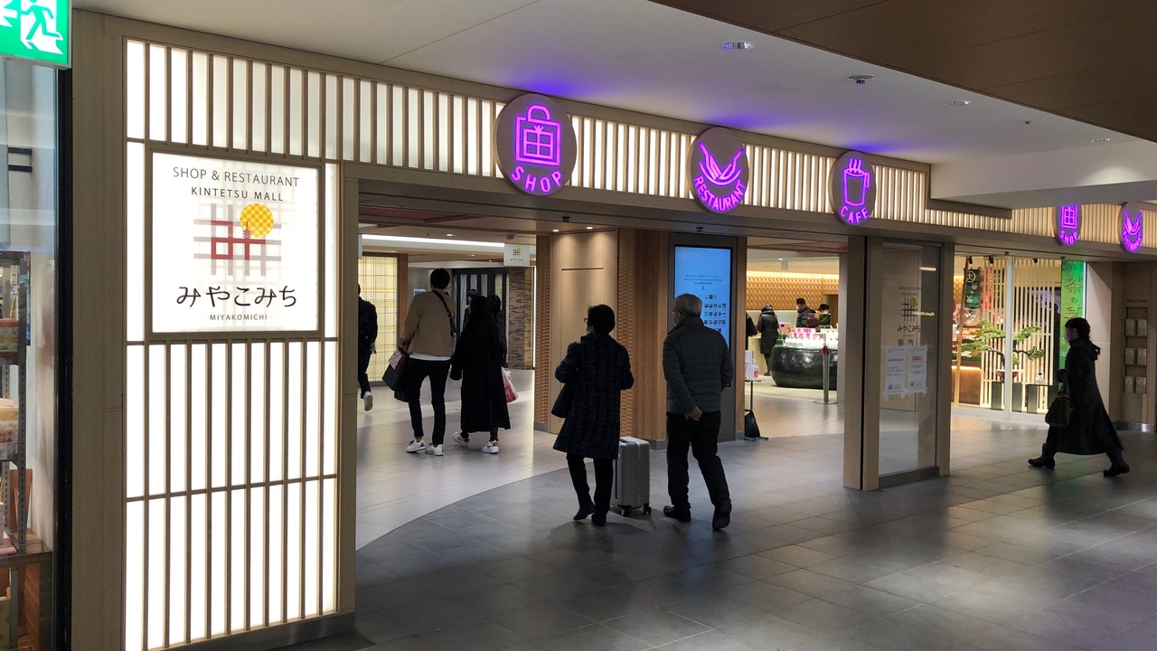 京都駅八条口の商業施設です。通路の両側に店が並んでいます。新幹線の改札口に近いので、観光客向けの店が多いです。甘味処、和雑貨屋さん、漬物屋さん、京都発の洋食屋さんなど、京都らしい店が多く集まっています。
