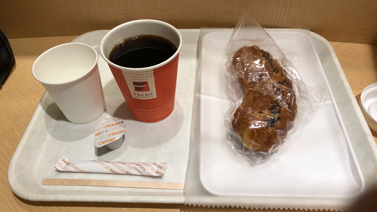 阪急梅田駅の2階改札口を出た場所にあるベーカリーです。カフェスペースもあります。パンとドリンクを一緒に注文すると、50or100円の割引があります。また、閉店間際になると、20%引きになり、お得でした。