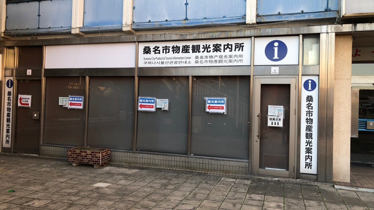 桑名駅の近くにある観光案内所です。以前は、駅前の古いビルの1Fにありました。このビルが閉鎖されたため、移転しています。半円形の外観が特徴的です。観光パンフレットが無料でいただけます。「物産」という名前が付いていますが、土産品の販売はありませんでした。
