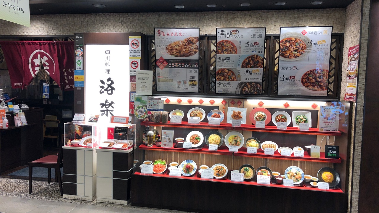 近鉄京都駅の下にあるレストラン街「みやこみち」にあります。近鉄が運営する四川料理店で、京都駅の地下街ポルタにも、姉妹店があります。おすすめは、麻婆豆腐です。「幸福の麻婆豆腐」という名前のとおり、辛いですが旨味たっぷりの味でした。