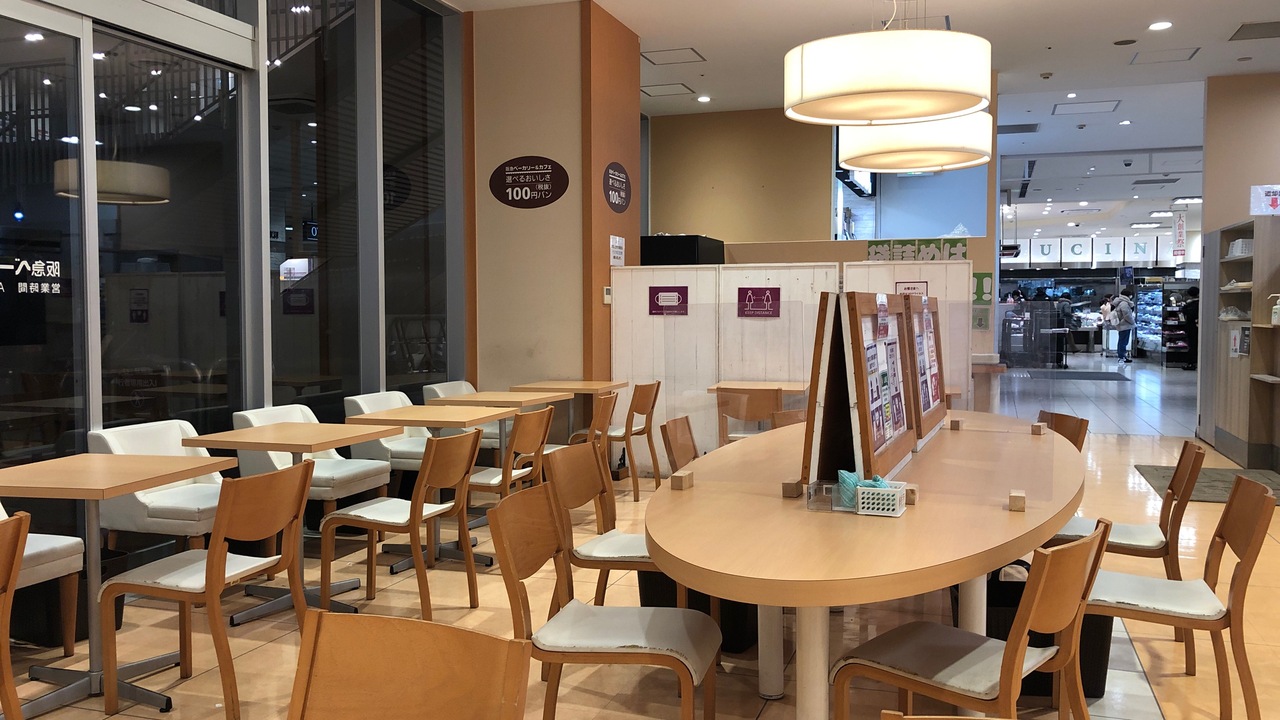関西でチェーン展開しているベーカリーです。どのパンも100円なので、手軽に買えます。イオンモール京都店は、モールの1Fにあり、広めのイートインスペースもあります。ドリンクとパンをセットで買うと割引があります。