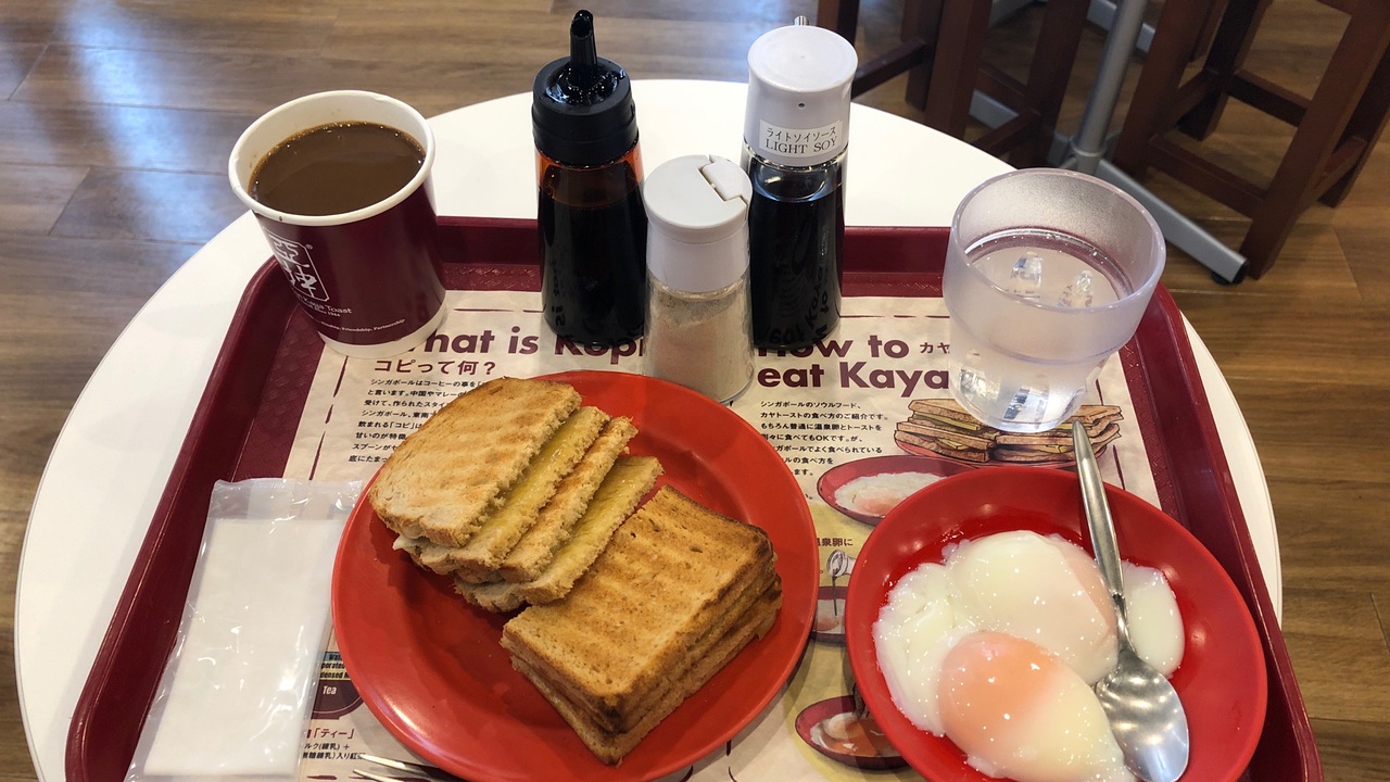 新宿住友ビルの中にあるファストフードです。シンガポール式の朝食メニューがあります。バター・練乳ジャムが挟まったトーストに、溶きほぐした温泉卵を付けていただきます。ドリンクも、ベトナムコーヒーのような感じで、異国感が味わえました。