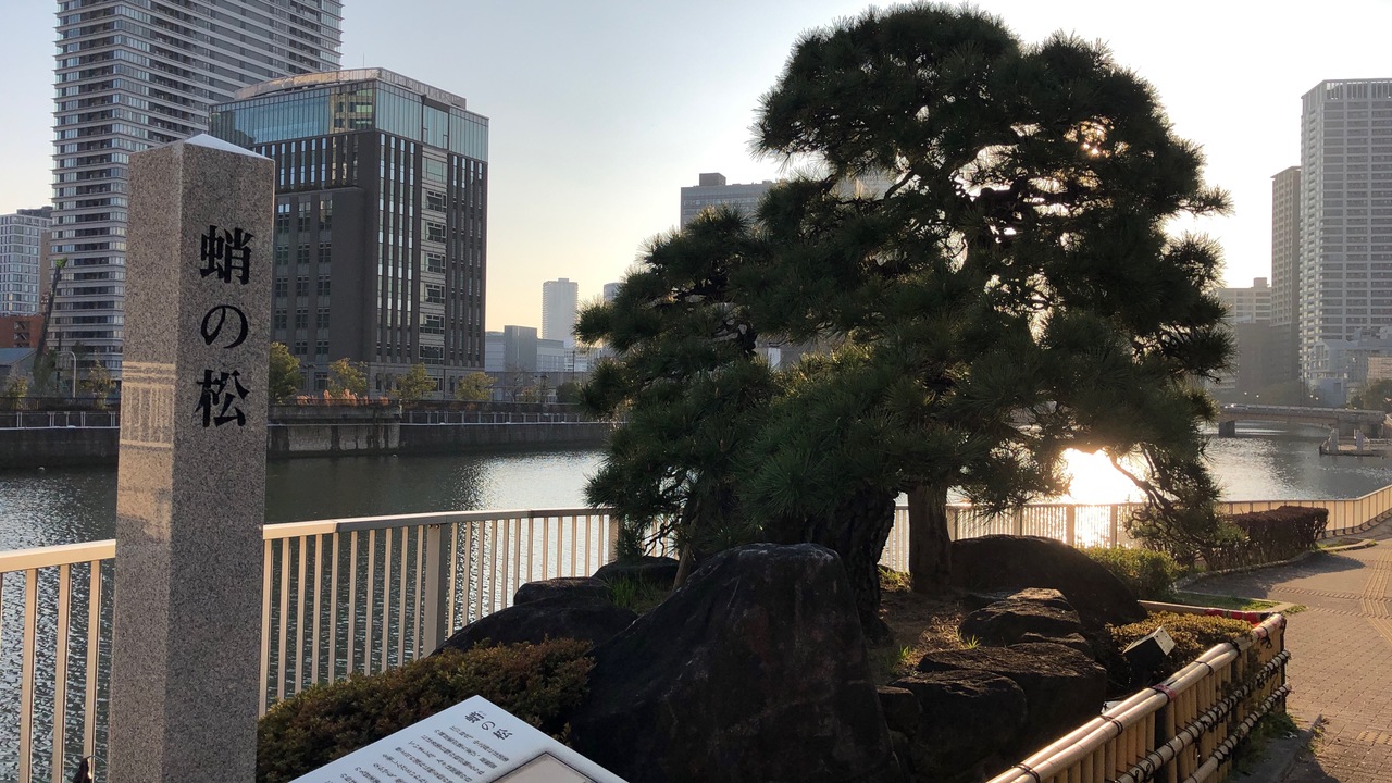 江戸時代、中之島には、諸大名の蔵屋敷が多数建てられました。各蔵屋敷には、各藩自慢の松の木が植えられました。蛸の松は、その中で有名な松です。広島藩主・福島政則が植えたといわれています。蛸の泳ぐ姿に似ていることから「蛸の松」と名付けられました。