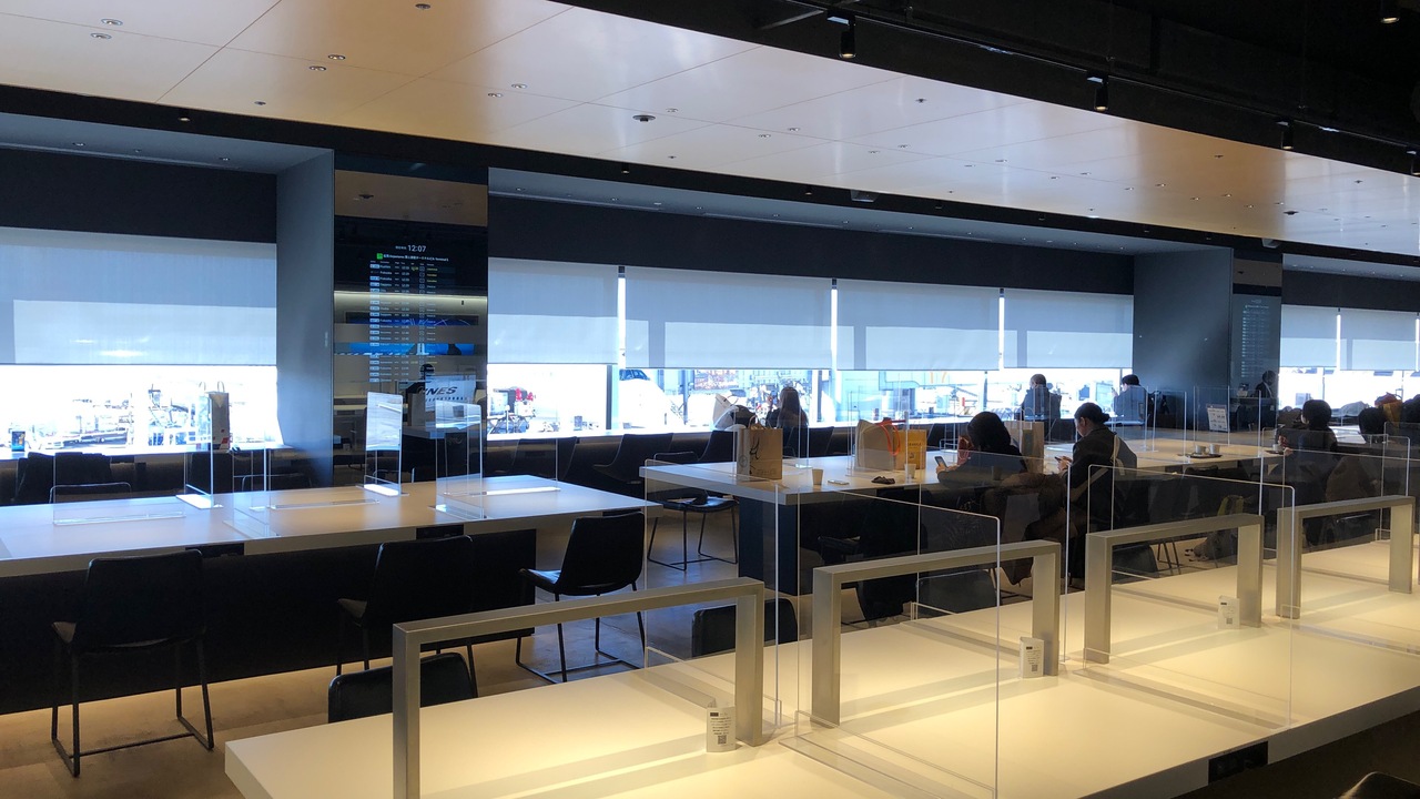 羽田空港に数カ所あるクレジットカードラウンジです。JAL側の第1ターミナルには、左右2か所にあります。ラウンジ内もデスクも広々しており、ビジネス利用にも便利です。フリードリンクに、黒酢ドリンク、青汁がある点が珍しいです。