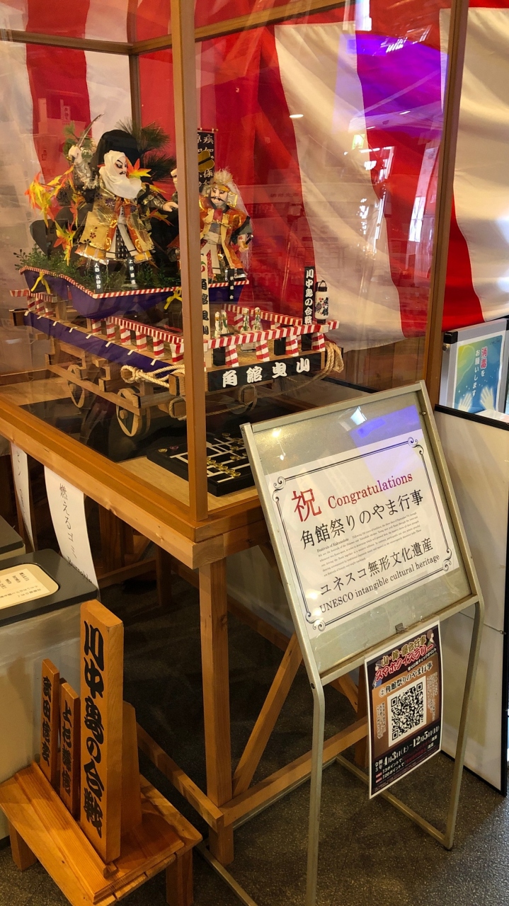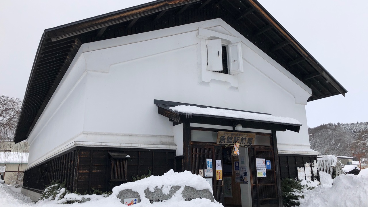 角館駅前にある観光案内所です。「駅前蔵」という名前のとおり、蔵造りの建物です。角館観光は、武家屋敷通りを歩くのがメインなので、駅前蔵で地図をもらっておくといいです。スマホ充電コーナーもあります。また、角館祭りの曳山の模型も展示されています。