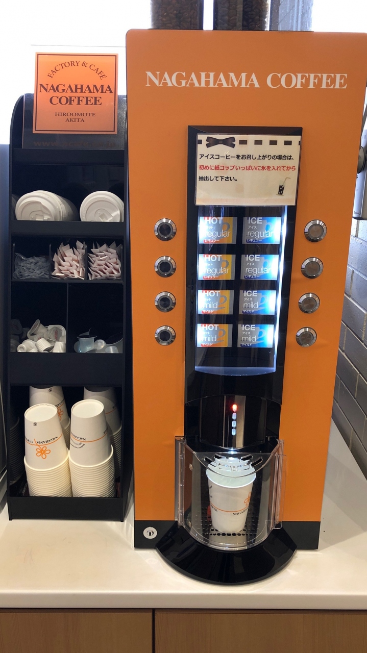 秋田空港の2Fにある、クレジットカードラウンジです。リニューアルしたかのような、明るくてきれいな店内です。無料のコーヒーマシンが、秋田の有名カフェ・NAGAHAMAコーヒーのものでした。ホットorアイス、マイルドorレギュラーが選べ、満足しました。