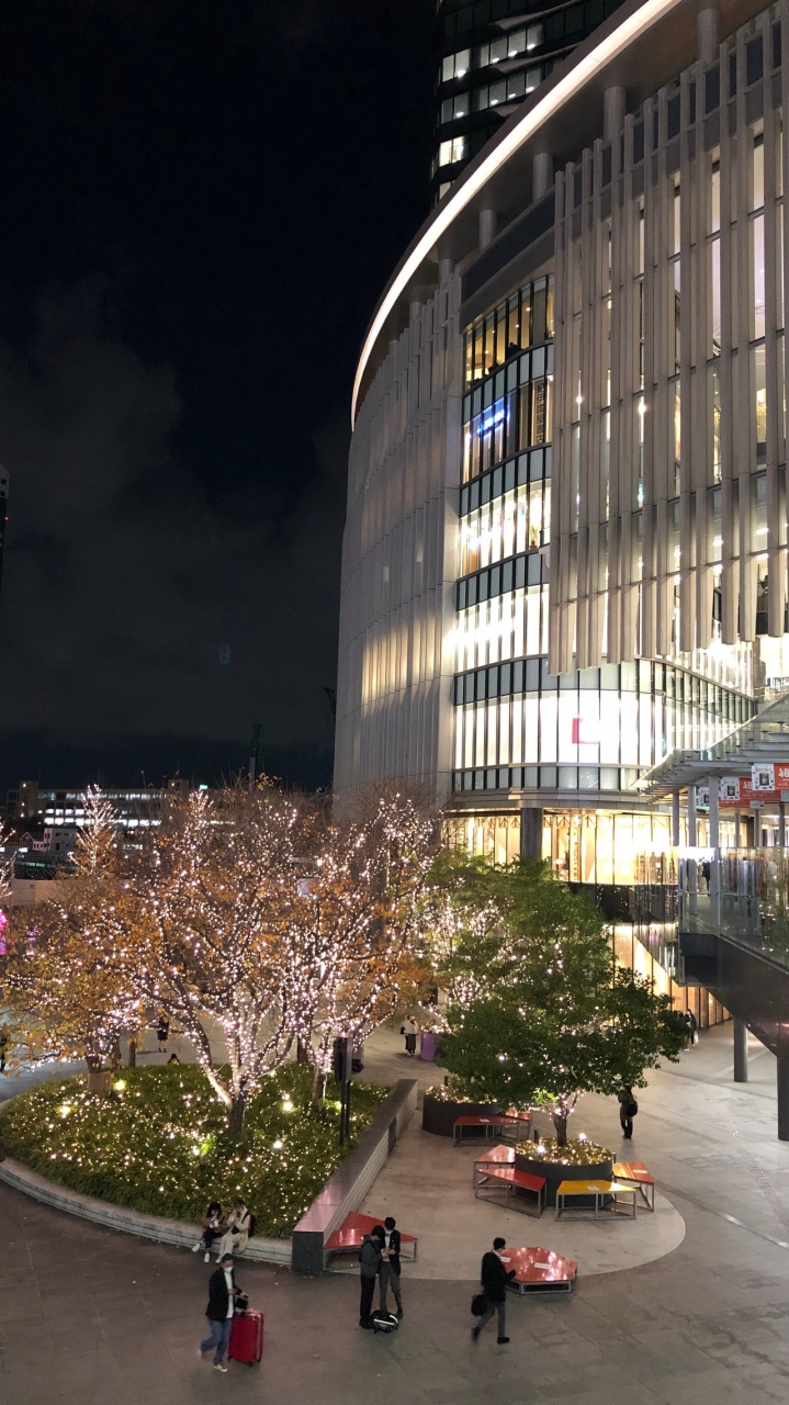 JR大阪駅の北側の複合施設です。大阪駅に近い方の南館、及び北館などがあります。外観は高層ビルですが、商業施設は9Fまでで、その上はオフィスタワーとなっています。冬は、グランフロントを中心に、エリア一体がイルミネーションで照らされます。