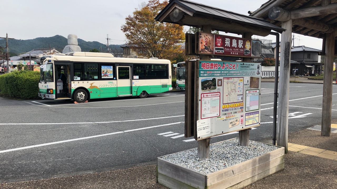 奈良市のほか、八木・飛鳥・吉野など、奈良県内各地を走る路線バスです。白・緑の車体に、鹿のマークがついています。今回は、明日香周遊バス(赤かめ)に乗りました。飛鳥・明日香の観光スポットは、駅から離れている場所もあるので、赤かめバスが便利です。
