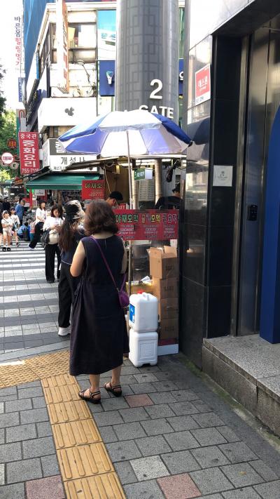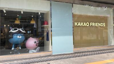明洞のロッテヤングプラザ1階にあります。道沿いに、カカオのキャラクターがディスプレイされており、目立ちます。カカオは、韓国のトークアプリです。LINEのように、かわいいキャラクターが多数います。ショップでは、これらのキャラクターグッズが売られています。