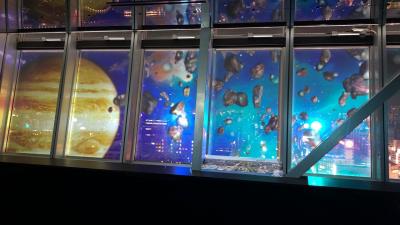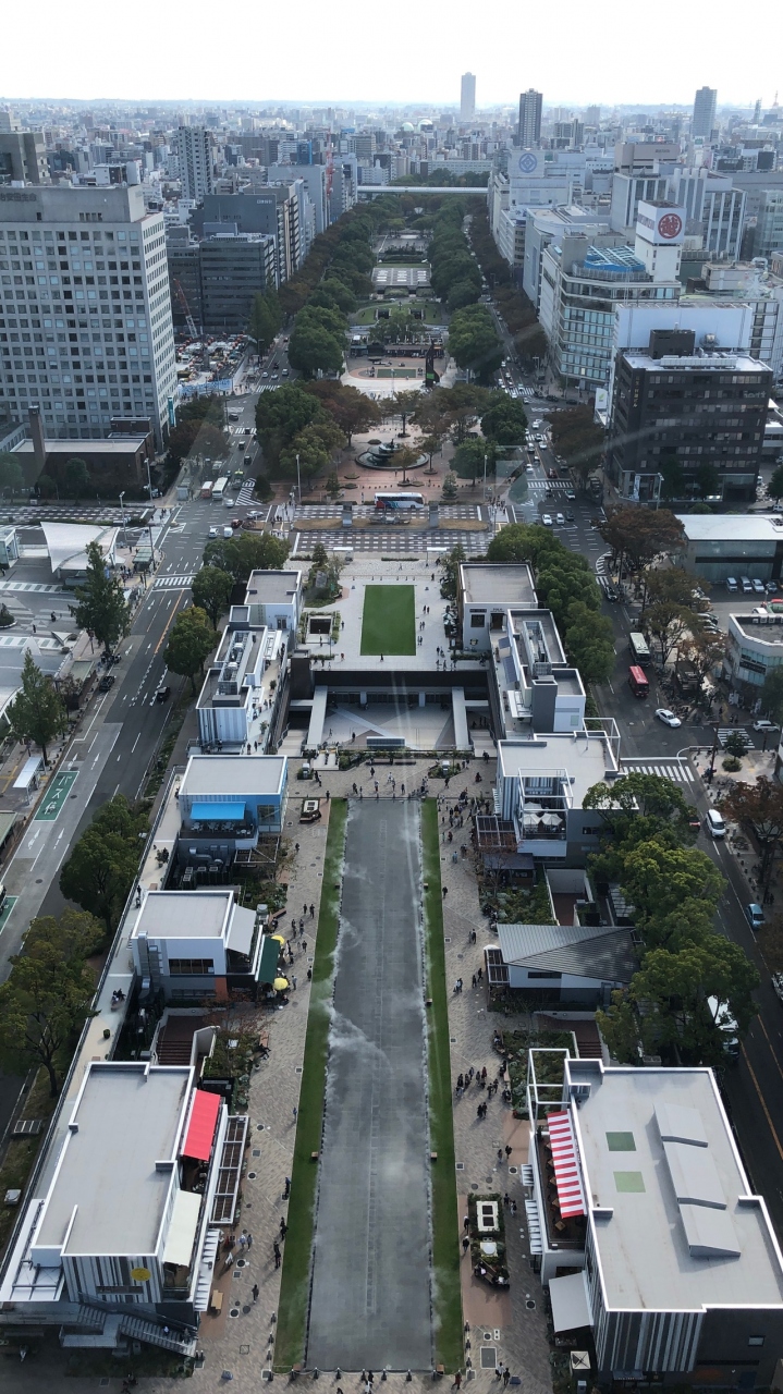 栄にある展望タワーです。リニューアル後、中部電力ミライタワーという名前に変わりました。タワー内に、おしゃれなホテルやカフェもできました。2021年10月は、夜間に、展望フロアでプロジェクションマッピングも行われていました。