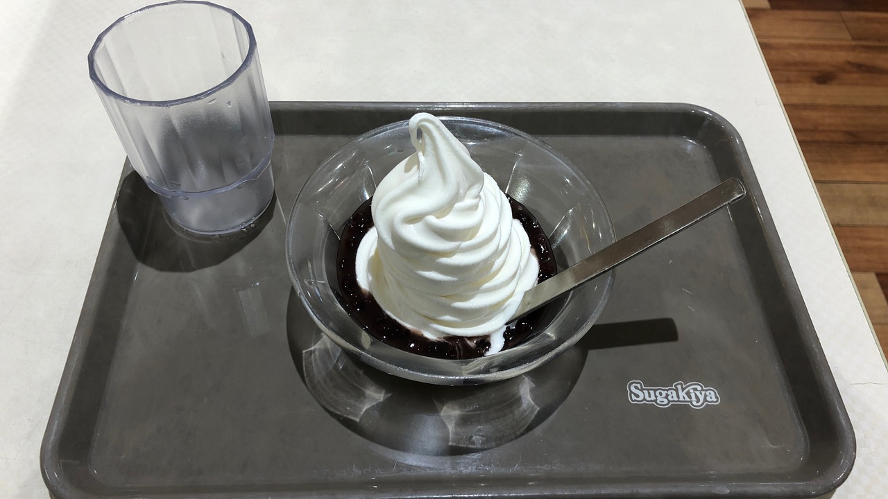 地下鉄・茶屋ヶ坂駅近くのショッピングセンター・アピタの3Fにあります。フードコートにあるので、座席が多いです。今回は、クリームぜんざい240円を食べました。スガキヤといえばラーメンですが、ソフトクリームもお手頃価格でおいしいです。