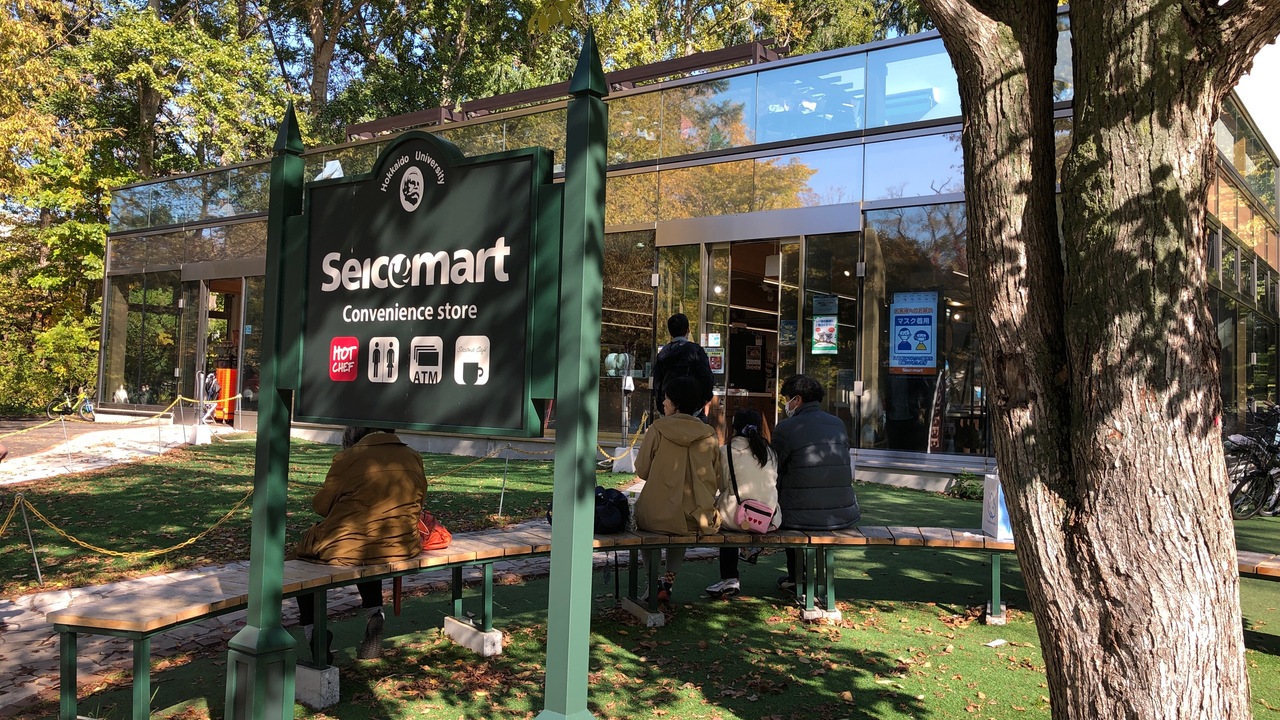 北海道大学の構内にあるセイコーマートです。ガラス張りの外観は、街中にあるセイコーマートとは全く違う雰囲気です。2Fにはイートインスペースがあります。扱っている商品は一般のセコマと同じで、北海道大学の関連グッズが売られている店が独特です。