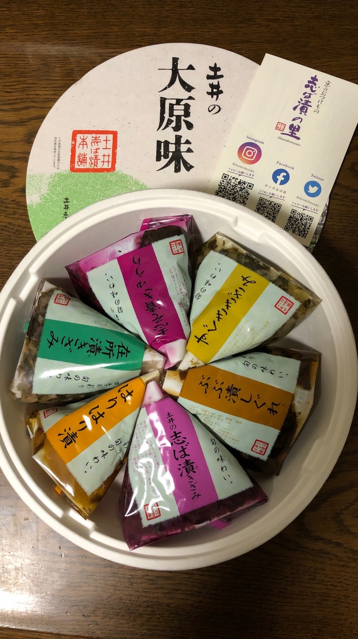 京都の有名な漬物屋さんの一つです。店名のとおり、紫蘇を使った志ば漬が名物です。本店は、京都市街地から離れた大原にありますが、京都駅の地下街ポルタ、清水坂などに支店があります。6種類の漬物が入った1000円ぐらいの詰め合わせが、志ば漬以外も味わえてよかったです。