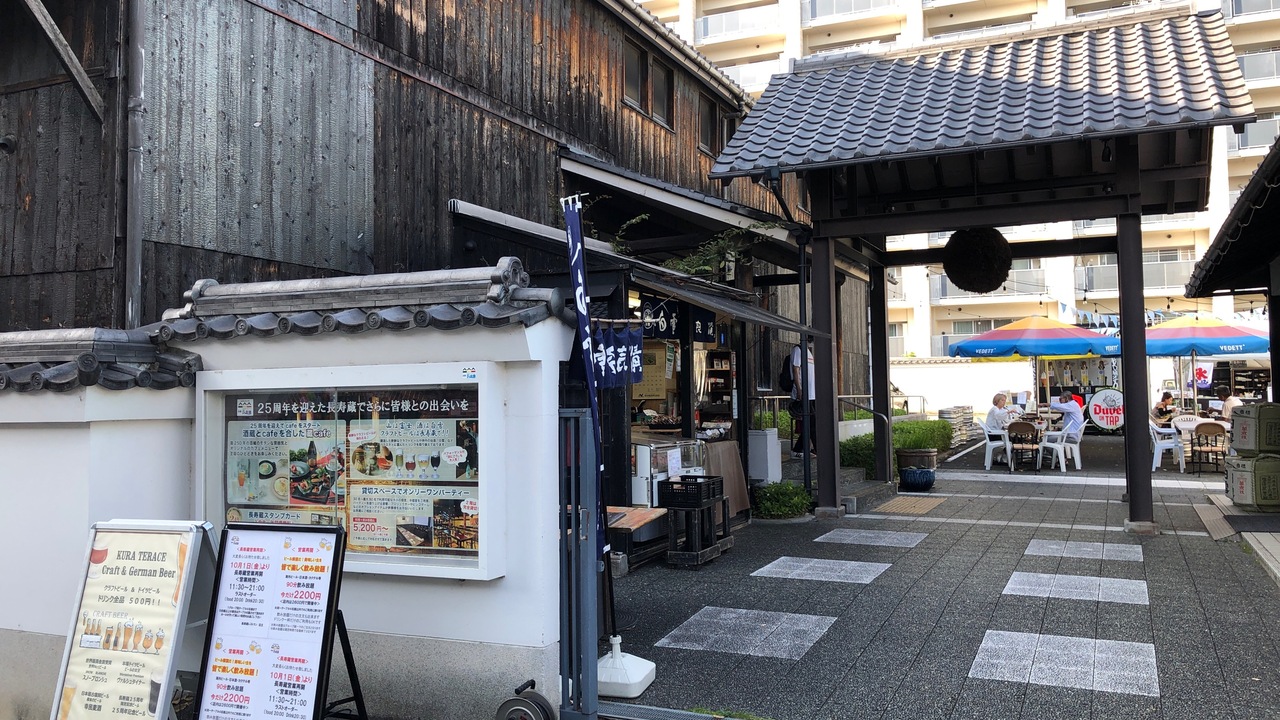 JR伊丹駅と阪急伊丹駅の間ぐらい、伊丹市の中心部にあります。長寿蔵(ちょうじゅぐら)という酒造メーカーのようです。見学施設やレストラン、ショップなどが集まっています。築250年の蔵の雰囲気が印象的です。