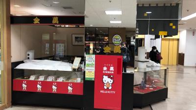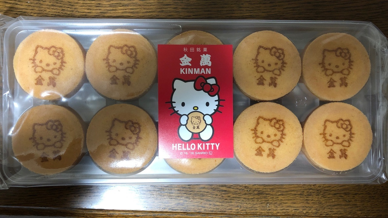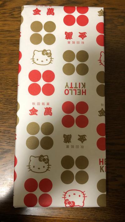 秋田銘菓といえば金萬です。カステラ生地の中に白い餡が入っています。洋風饅頭のような雰囲気です。フォンテ店は、2F、ロフトの前にあります。同じ値段でハローキティバージョンもあります。京都や鹿児島でも似たようなお菓子があり、なぜ秋田銘菓なのかは気になります。
