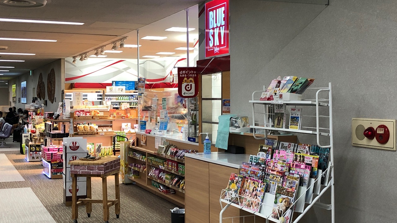 JAL系列のショップです。保安検査後の搭乗待ち合いエリアにあります。大分空港のブルースカイに限らずの話ですが、JALカードで1000円以上買うと、5%引きになります。ただ、大分空港のブルースカイは小さめの店舗なので、保安検査前に別の土産店で買っておく方がいいかもしれません。