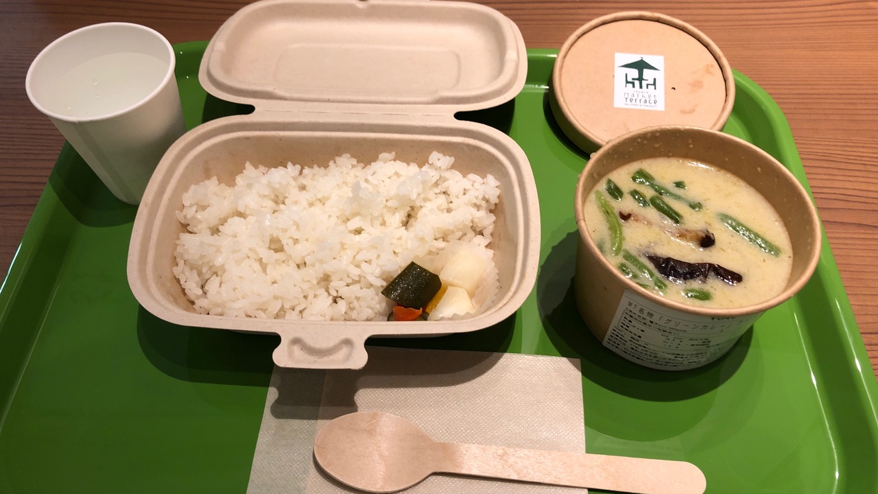 川越卸売市場にある、人気のビュッフェレストランです。埼玉県産の食材が多く使われています。本川越駅のぺぺ1Fに、セルフサービス形式の簡易レストランがあります。今回はこちらで、マーケットテラスおすすめのグリーンカレー640円を食べました。見た目はホワイトシチューのようですが、本格的な辛さでした。