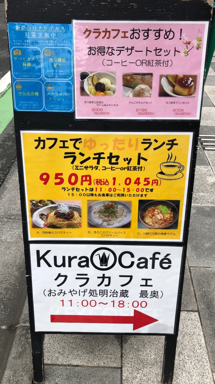 本川越駅の近くにある複合観光施設です。酒蔵を再利用した建物です。おみやげ処(明治蔵)、まかない処(大正蔵)、ききざけ処(昭和蔵)という3つの建物があります。おすすめは、大正蔵の中にある「クラカフェ」です。さつま芋プリン・コーヒーのセットが600円とお手頃で、コーヒーがとてもおいしかったです。