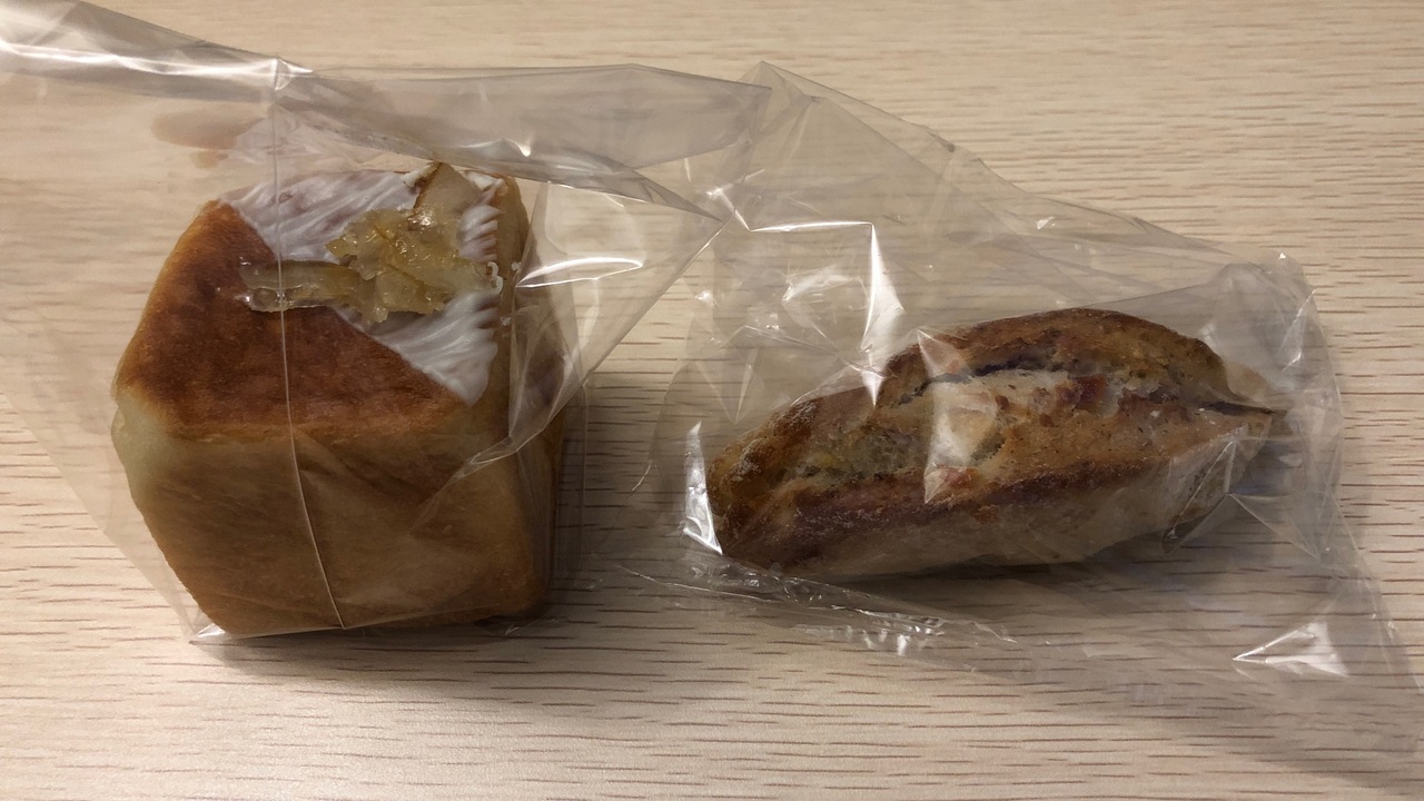 ライフ吉川店の北側にあるベーカリー&カフェレストランです。閉店間際にテイクアウトで利用しました。写真の左はオレンジ風味のキューブパン、右はクリームチーズパンです。どちらも200円ぐらいして、サイズは小さめなので、少し割高に感じました。カフェレストランではランチメニューもあるようで、次回利用してみたいです。