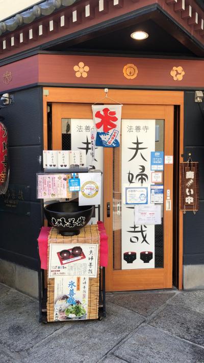 大阪ミナミの法善寺横丁にある善哉屋さんです。織田作之助の小説「夫婦善哉」の店として有名です。ぜんざいは2つのお椀に分けて提供されます。量は多くなく、白玉が1つずつ入っているだけで、1人前800円なので、高く感じました。