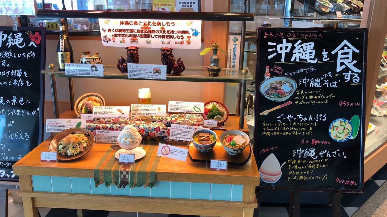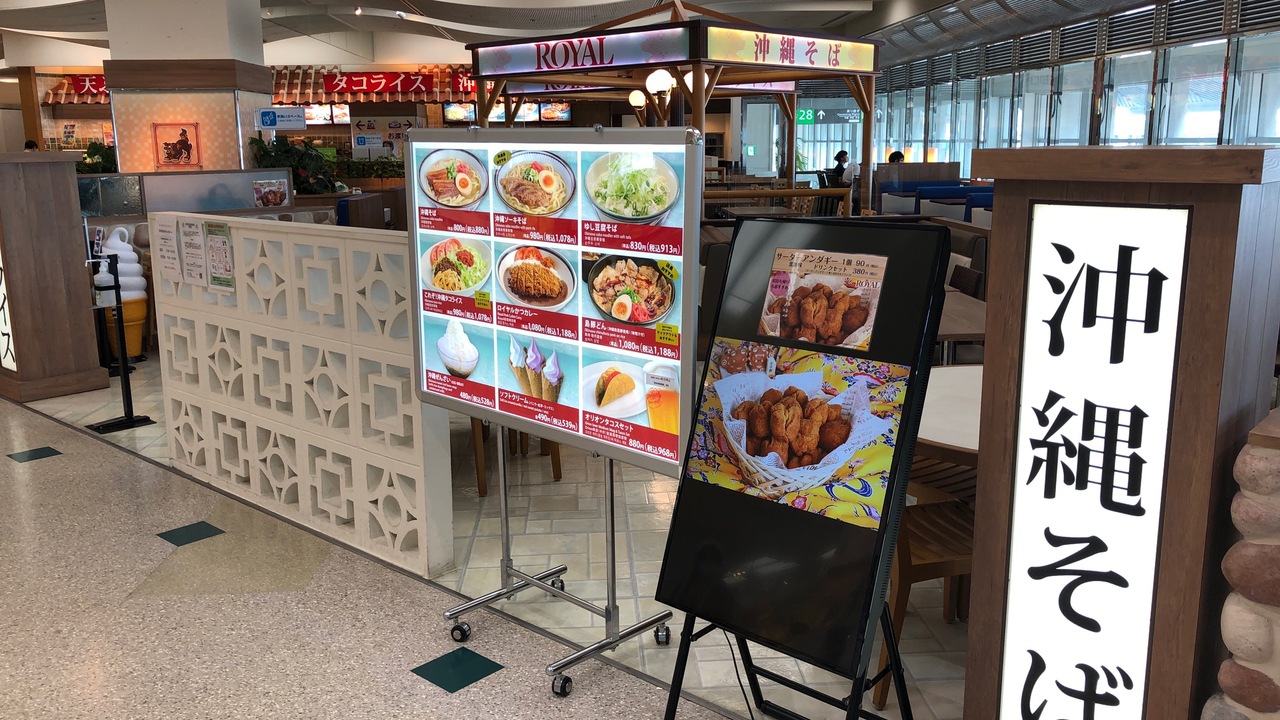 那覇空港国内線ターミナル・土産物売り場に隣接しています。沖縄そばやタコライス、沖縄豚丼など、沖縄グルメが味わえます。ロイヤルホスト系列の店なので、味は満足です。しかし、沖縄そばが800円ぐらいするなど、値段は高めです。店内は広く、レストランとフードコートの中間のような、開放的な雰囲気です。