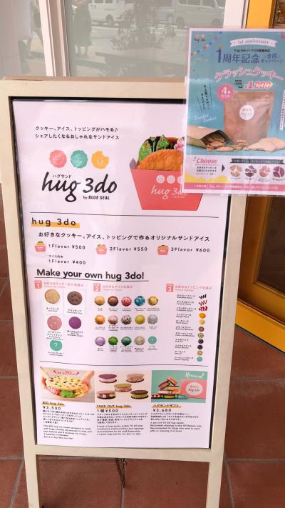 アメリカンビレッジ中心部にある、クッキーアイスサンドの店です。ブルーシールが新たに手がけた店です。カスタマイズできるメニューが楽しいです。中のアイスや挟むクッキー、トッピングが自分で選べます。「3」がつく「3、13、23」日は、アイス3個のハグサンドが、600円から500円に割り引かれます。