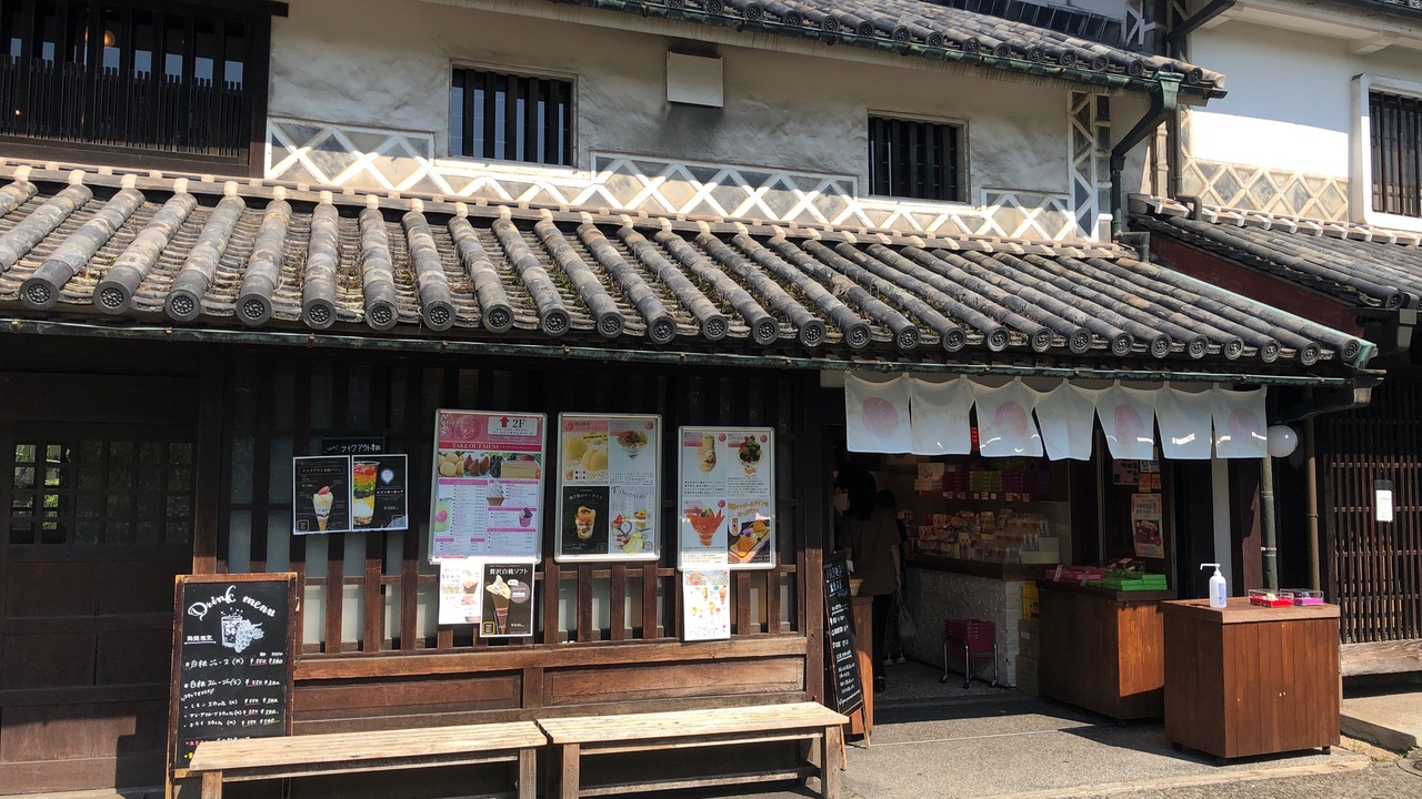 くらしき桃子は、美観地区に4店舗あるスイーツ店です。店名のとおり、桃を中心としたスイーツがおすすめです。この4店舗、徒歩圏内に集まっているのですが、各店で桃パフェのメニューが違います。食べたい桃パフェがある店を選ぶことをおすすめします。また、人気店なので、混んでいたら、他のくらしき桃子へ行くことも一案です。