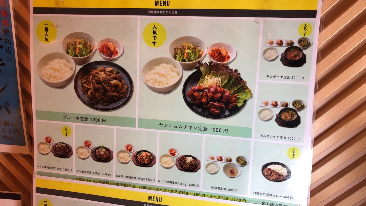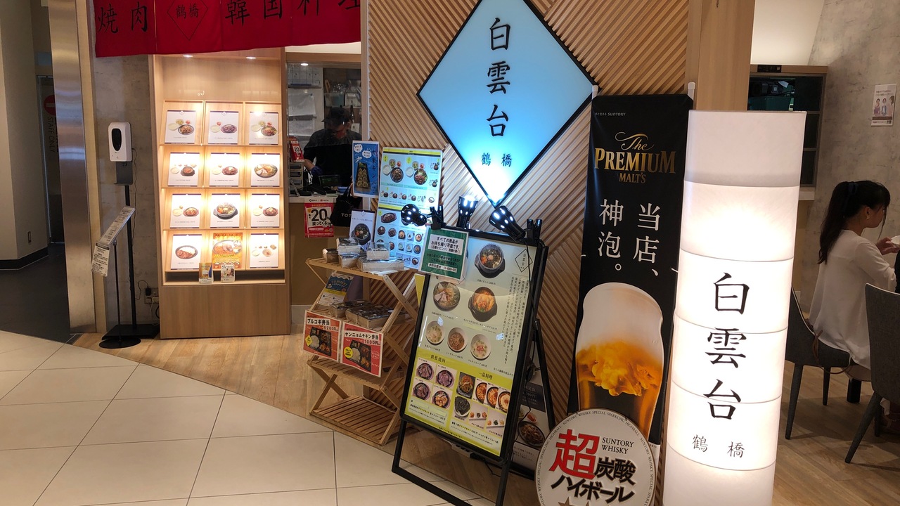 白雲台は、鶴橋の焼肉店です。伊丹空港のANA側のフードコートに支店があります。保安検査後のエリアなので、飛行機に乗るときしか利用できません。ヤンニョムチキン定食1000円を食べました。高めでしたが、辛すぎないチキンの味や、キムチがおいしかったです。