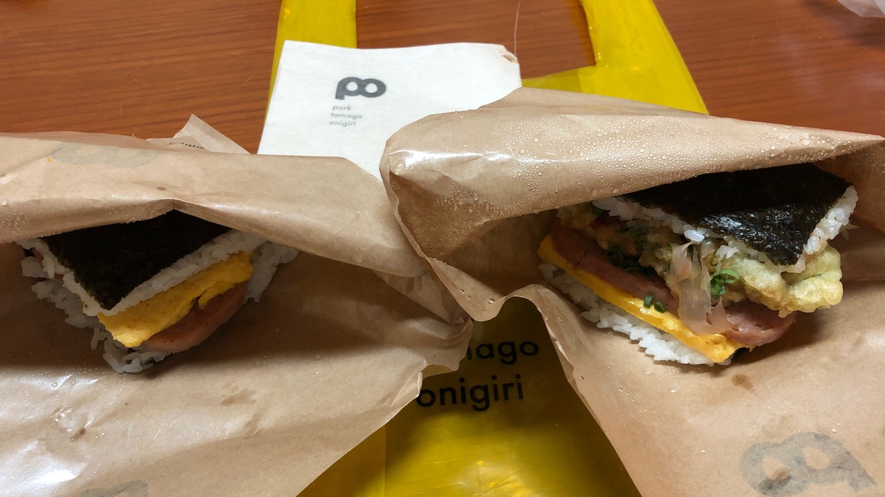 沖縄おにぎりの人気店です。那覇空港は、1F国内線到着口にあります。どの時間帯も混んでおり、今回は整理券をもらい30分ぐらい待ちました。できたてを提供するので、待ち時間が長くなりがちです。牧志公設市場の近くにある牧志店の方が空いていることが多いように思います。