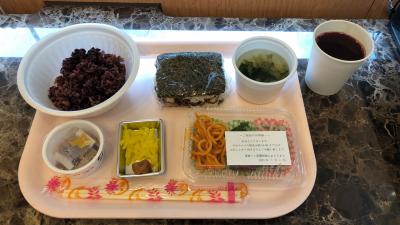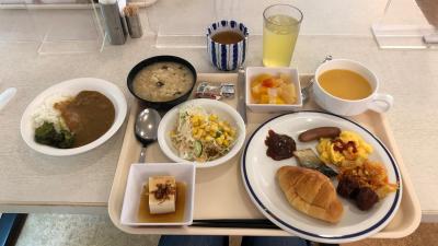 那覇市最大級のショッピングモール・那覇メインプレイスの前にあるホテルです。メインプレイスには、スーパー・サンエーや飲食店があり、便利な立地です。朝食は、ポークたまごおにぎりやアーサ汁など、沖縄らしいメニューもありました。