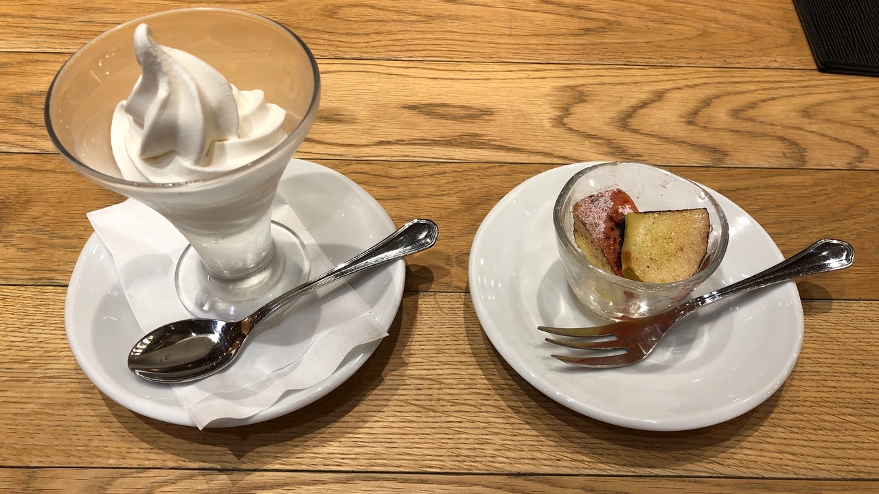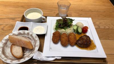 みのるダイニングは、全農が手がけるレストランです。仙台や京都でも見かけました。ご当地食材を使っているので、各店舗でメニューが違います。盛岡駅フェザン1Fの店では、メイン2品を選んで1400円ぐらいの定食メニューがありました。ハンバーグと三陸かきフライを選び、高めの値段でしたが、味は満足です。東北デスティネーションキャンペーンのサイトを見せると、焼きリンゴのミニデザートがサービスされました。