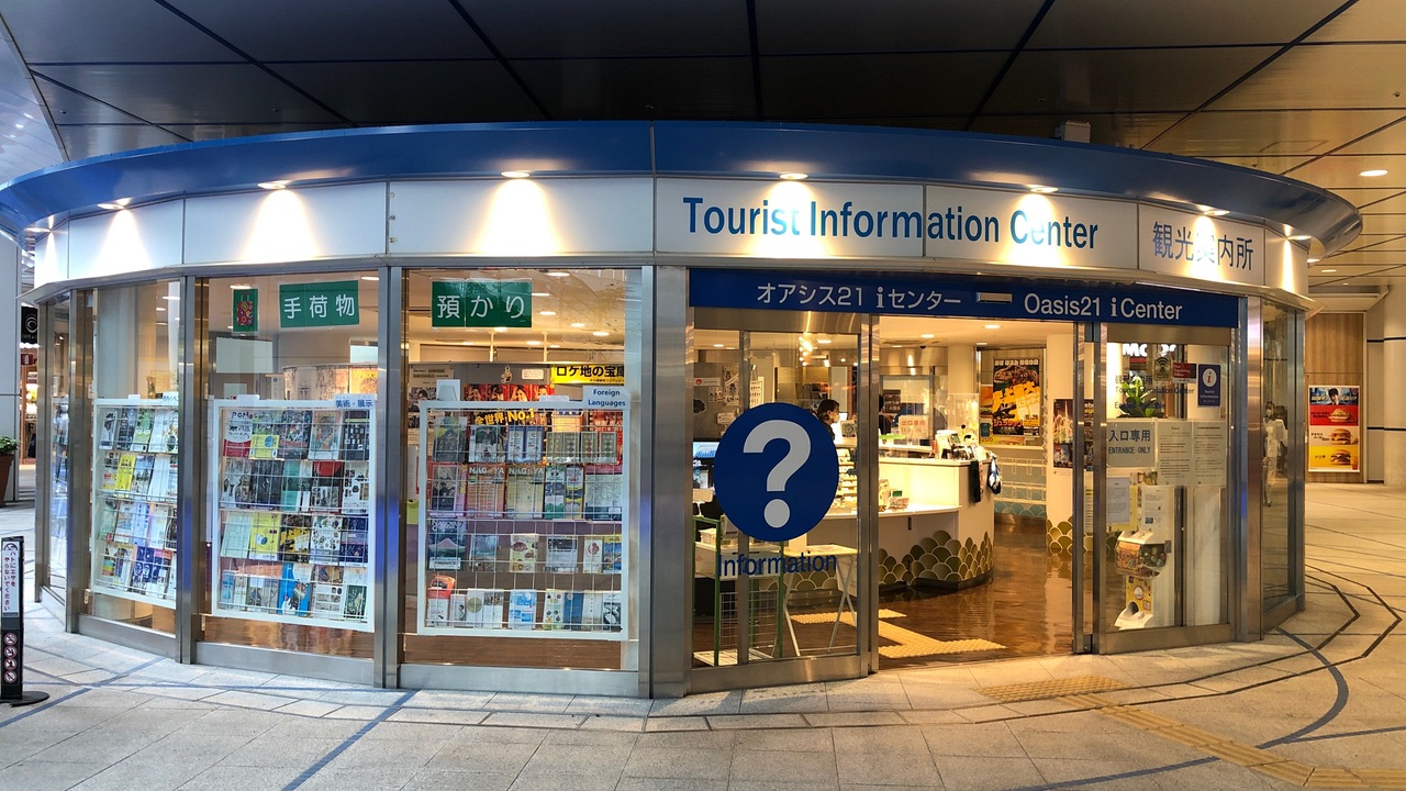 名古屋・栄にある「オアシス21」のB1Fにあります。円形の形が独特な観光案内所です。名古屋市に限らず、愛知全体の情報も手に入ります。カウンター内には案内員さんもいます。少しですが、名古屋の土産物も売られています。