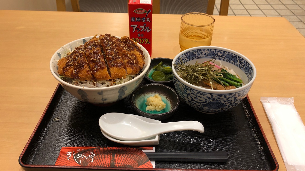 星ヶ丘三越8Fにある麺処です。エスカなどにも支店があります。味噌かつ丼セット1265円を食べました。味噌かつ丼・きしめんのセットです。名古屋グルメを一挙に味わえておいしかったです。地下鉄のドニチエコきっぷを見せると、ジュースがサービスされました。