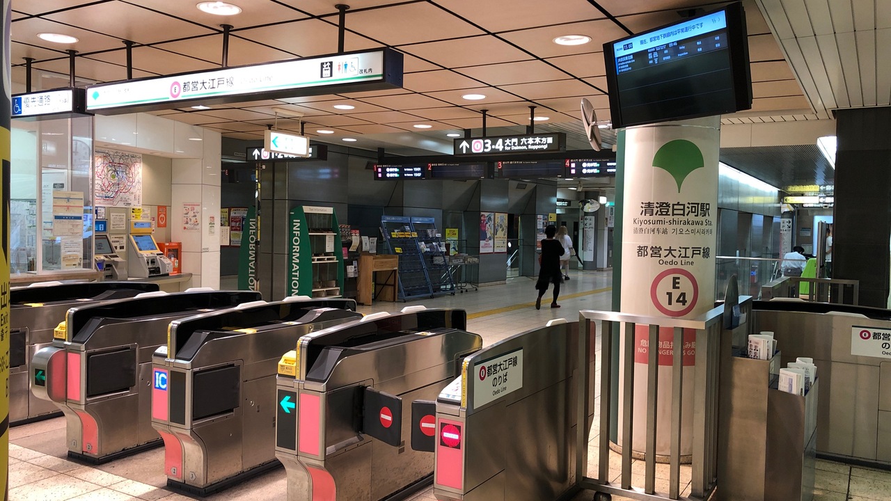 新宿~六本木~築地市場~両国~飯田橋~新宿と、東京都心を一周し、光が丘へと延びる都営地下鉄です。東京タワー最寄りの赤羽橋駅や築地市場駅、江戸東京博物館最寄りの両国駅など、観光スポットに近い駅が多いです。