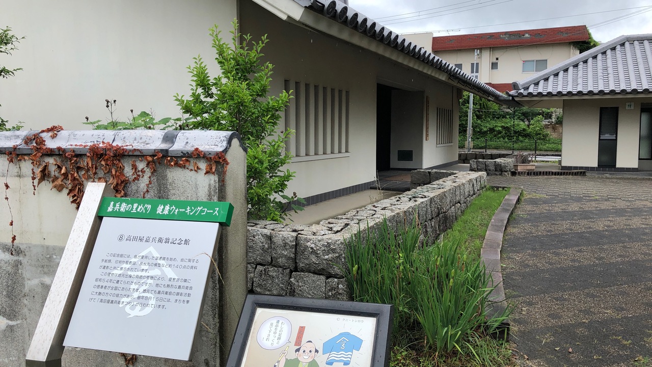 高田屋嘉兵衛は、ロシアとの外交などで活躍した人物です。洲本市都志で生まれました。こちらの記念館は、高田屋嘉兵衛の旧邸跡に隣接してつくられましたが、閉館してしまいました。近くの高田屋嘉兵衛公園内に、高田屋顕彰館という別の博物館があります。