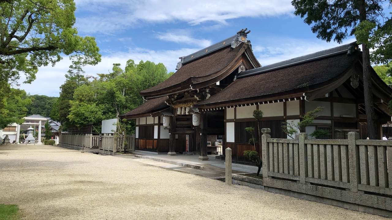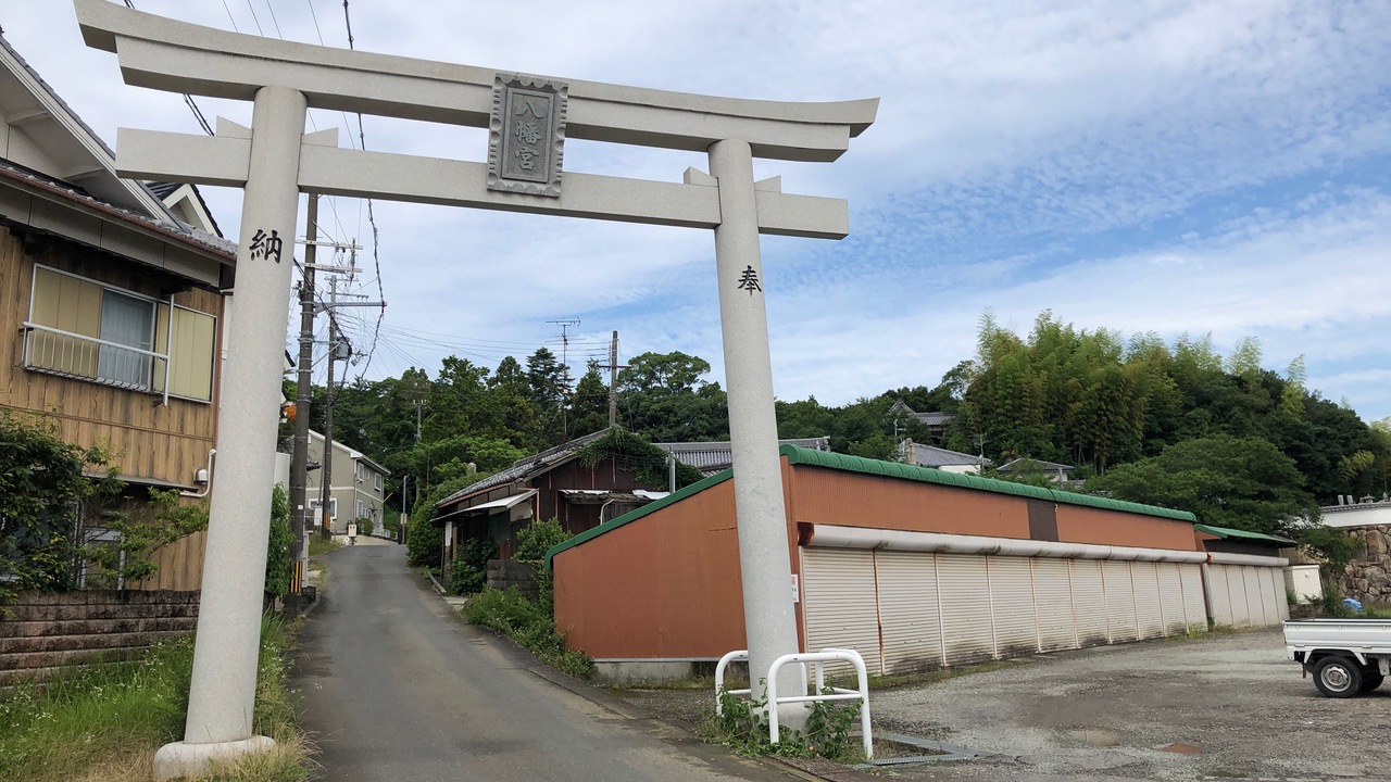 淡路市の八幡前交差点の近くにある神社です。春・夏・秋と、季節ごとに例祭が行われます。春の例祭では、淡路島でよく見られる、布団を重ねただんじりが巡行します、ふだんは、高台の森の中にある、静かな神社です。八幡寺というお寺が隣接しています。