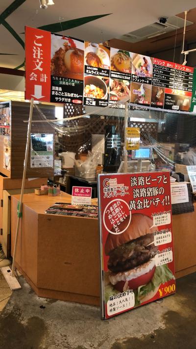 淡路夢舞台にあるカフェです。土産店が併設されています。淡路島ゴールデンハンバーガー900円を食べました。淡路牛・豚の合挽肉、淡路玉ねぎが入っており、淡路島らしいバーガーでした。多客期だったからか、20分以上待ちました。