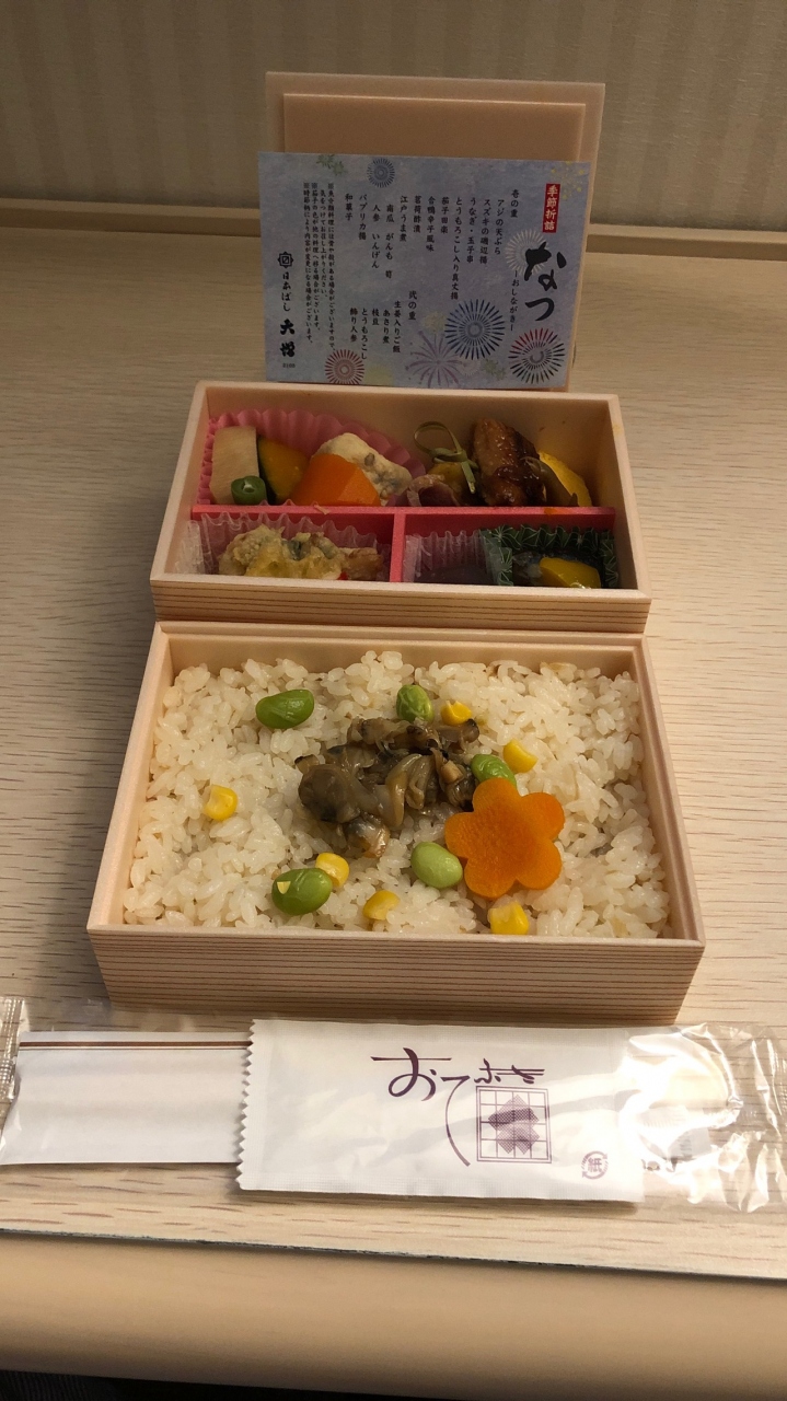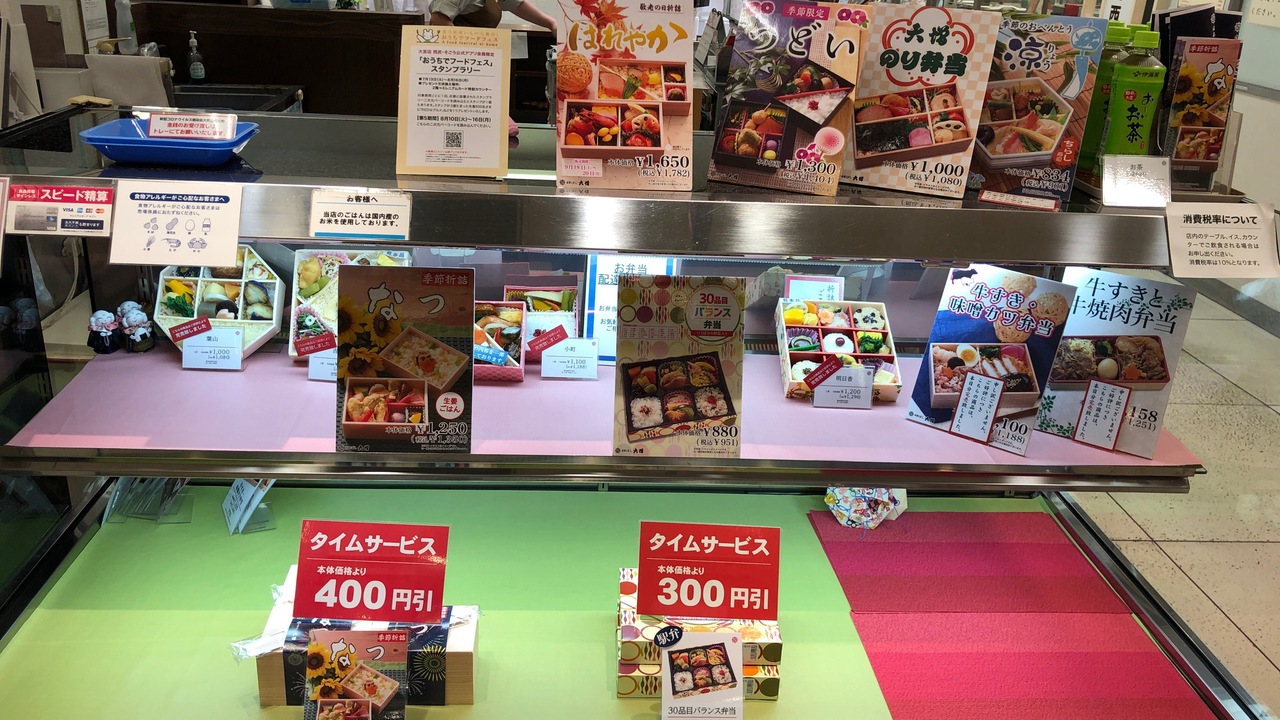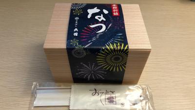 東京近郊で売られている駅弁「深川めし」「チキン弁当」などを作っている店です。明治33年創業の、歴史ある店です。今回は、大宮そごうB1Fで、「季節折詰 なつ」を買いました。あさり煮がのった生姜ごはん、うなぎ、茗荷の酢漬けなど、夏ならではの食材を味わえました。閉店間際の19時過ぎに買ったので、1250円を800円にしていただけました。
